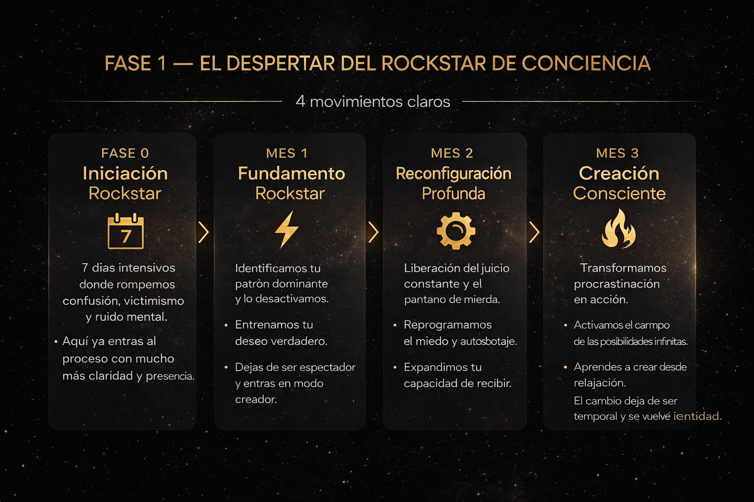 Rockstars de Conciencia es un sistema de reconfiguración interna diseñado para personas que ya hicieron desarrollo personal… pero siguen repitiendo los mismos patroness.